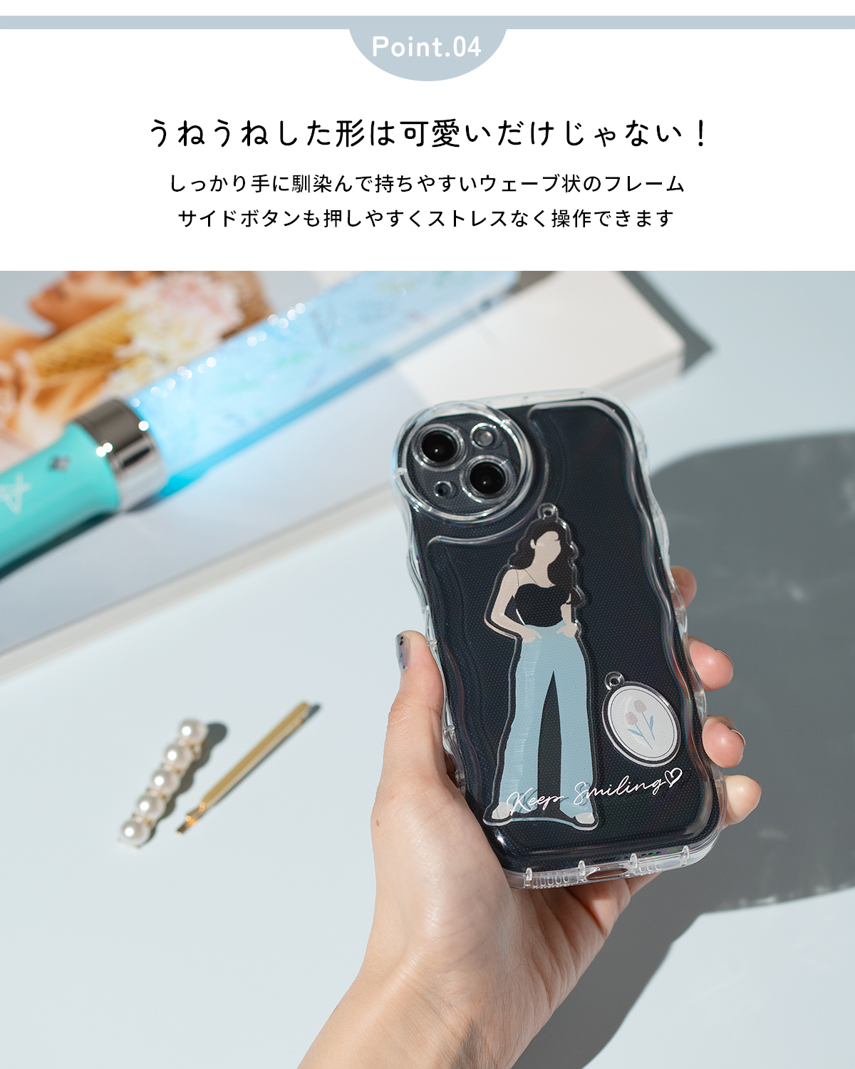 シャカシャカできるクリアケース。