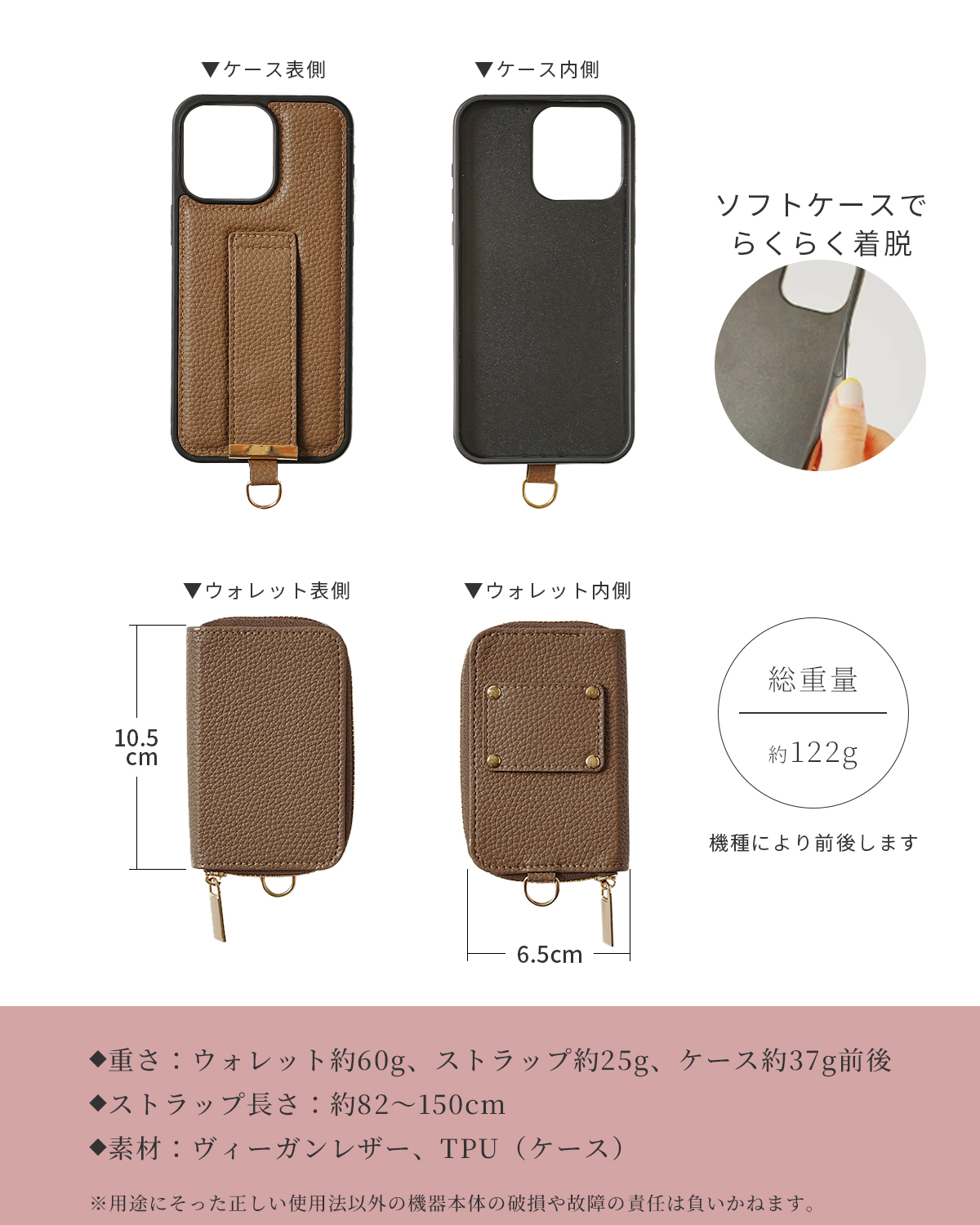 ◆重さ:ウォレット約60g、ストラップ約25g、ケース約37g前後