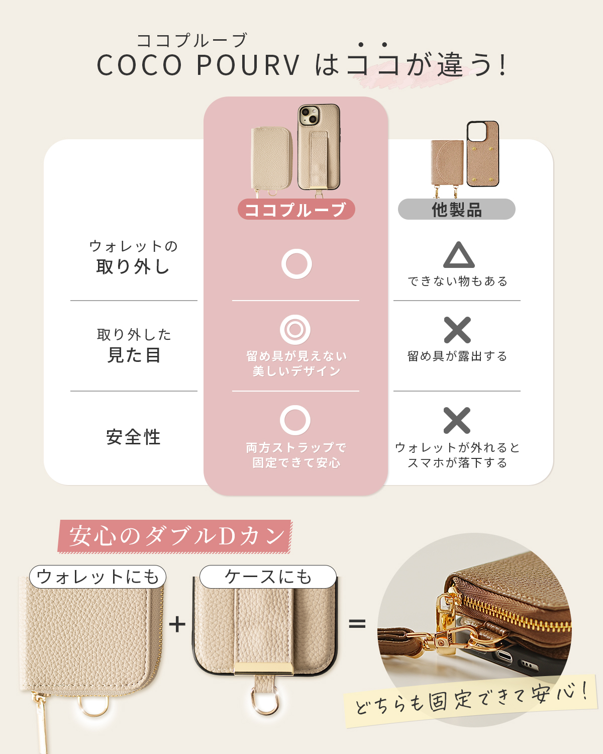 ウォレットを下げる時は、落下に十分ご注意ください。