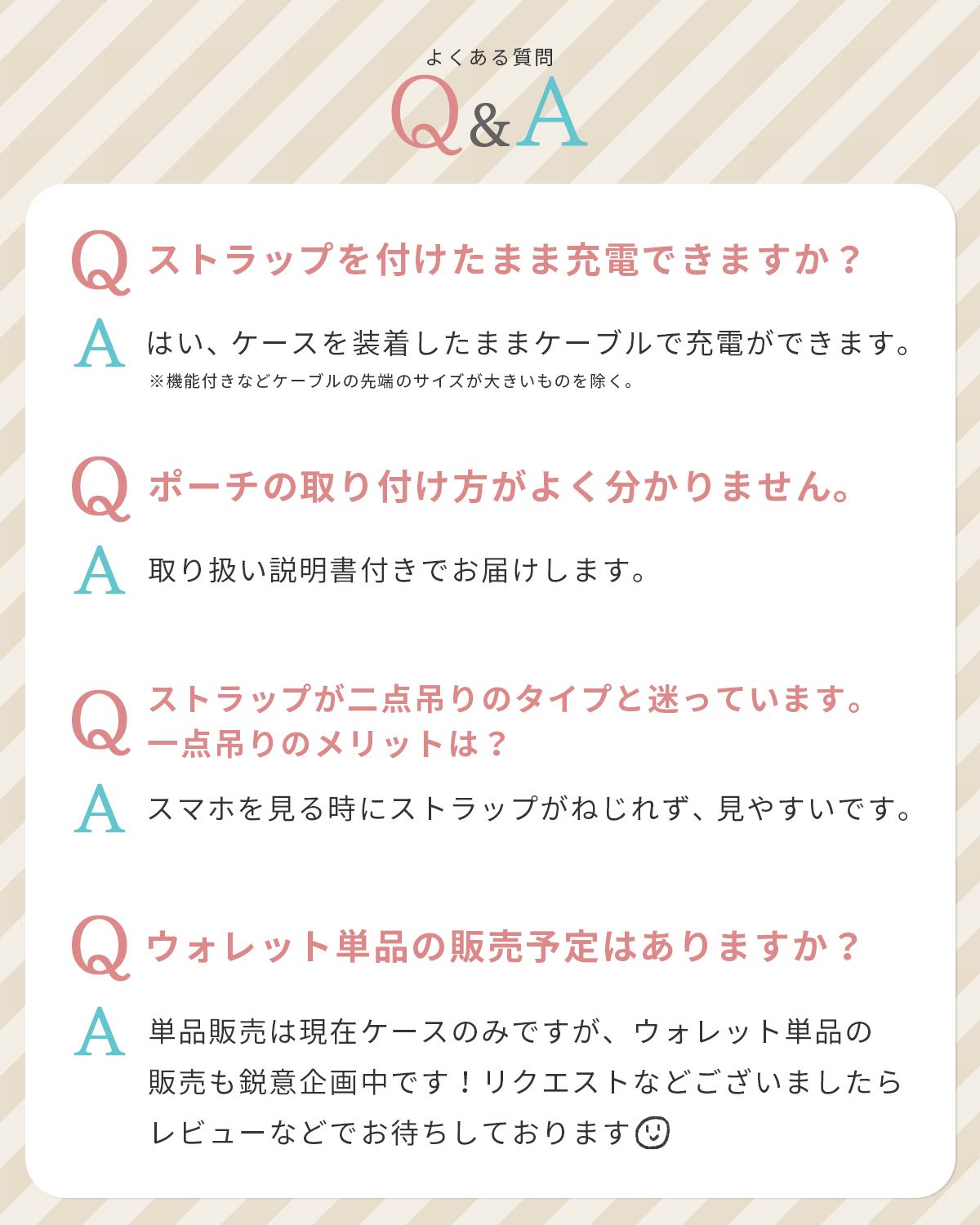 A 単品販売は現在ケースのみですが、ウォレット単品の販売も鋭意企画中です!